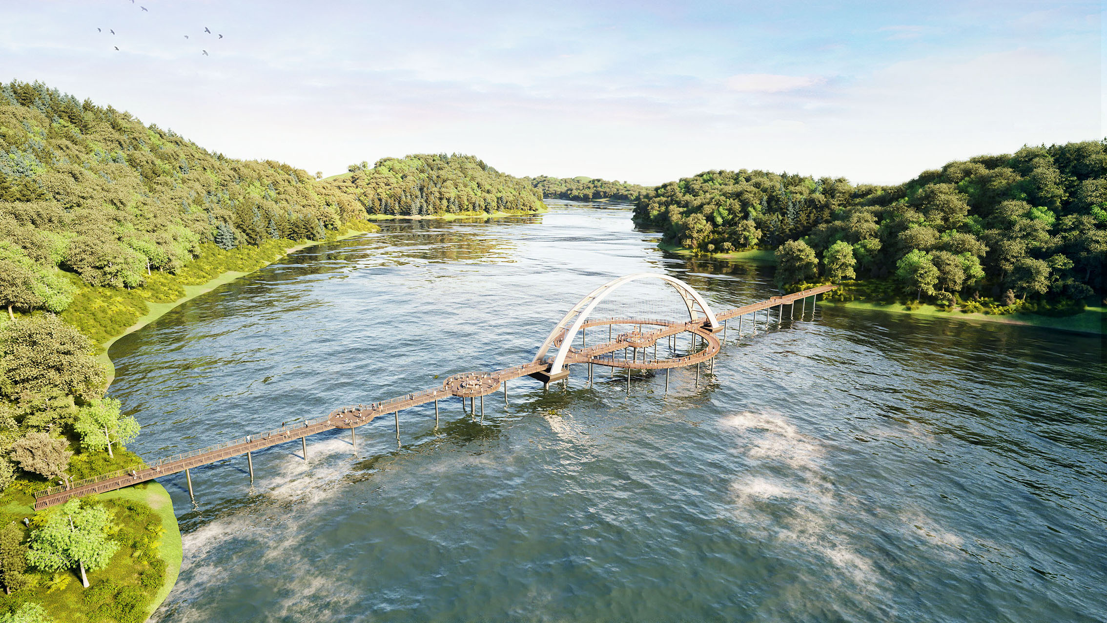 기존 교량의 일방적인 직선 통행이 아닌 원형의 동선을 조합하여 관광객들에게 새로운 시각적 다양성의 체험을 제공
