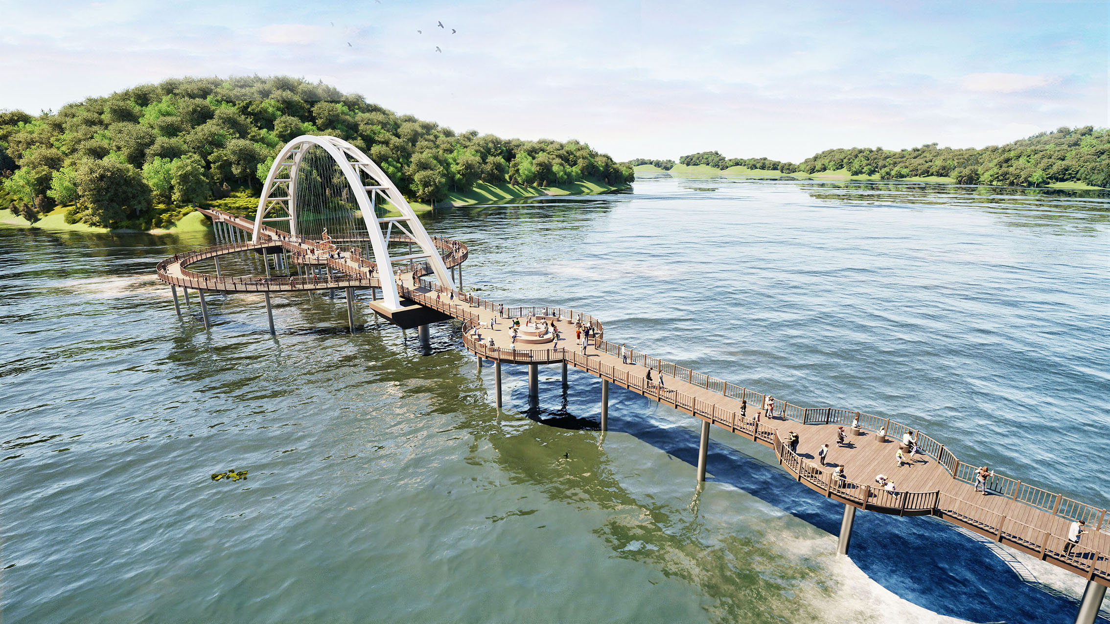 아치교량과 다양한 동선 및 휴식공간을 곡선과 원형으로 통일성을 주어 새로운 공간으로 창조
